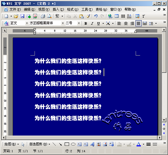 但是,WPS2007提供的方案還比較單一,無法改變顏色,下面讓我們自己動手,使背景色更加多樣化吧。