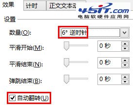 對于陀螺旋動畫,設(shè)置較小的角度(案例選擇了6度逆時針,因?yàn)榫匦伍_始順時針旋轉(zhuǎn)了3度),并勾選”自動翻轉(zhuǎn)”,設(shè)置好重復(fù)的次數(shù).具體如下圖: