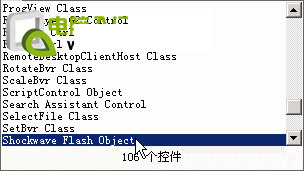 3、在下拉列表中找到S打頭的“Shockwave Flash Object”命令,點擊選中;