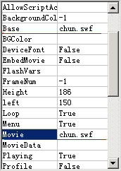 再往下找到“Movie”,點右邊空白,輸入chun.swf