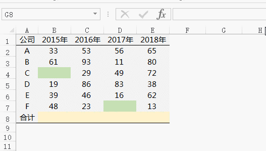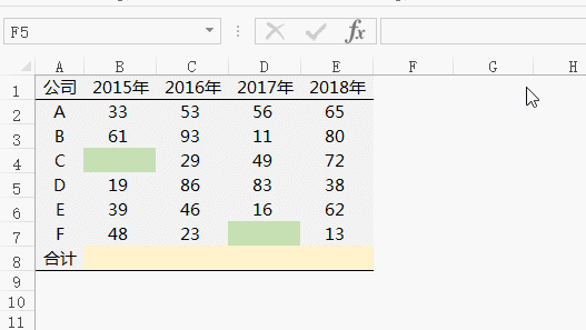 如果跨行,就需要按 Ctrl + G 定位空格,然后再按Alt + = 求和。