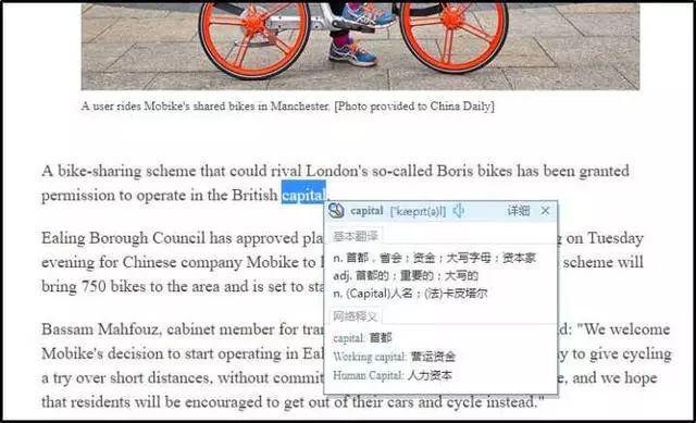 網絡上有一些工具,可以實現劃詞翻譯的效果(鼠標選中單詞,就能翻譯出來),特別方便。