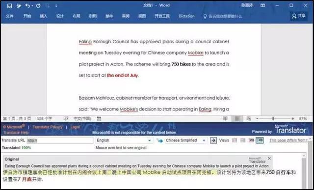 和在網頁上翻譯相比,它最大的優點是可以保持文檔的原有格式。