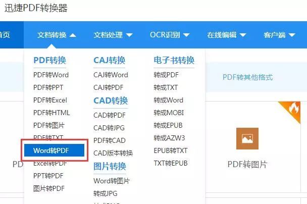 1、百度搜索“迅捷pdf在線轉換器工具”,選擇文檔轉換中的“word轉pdf”選項;