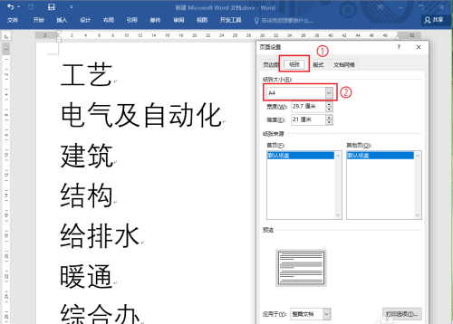 5、點擊【紙張】,選擇合適的紙張大小,例如“A4”。