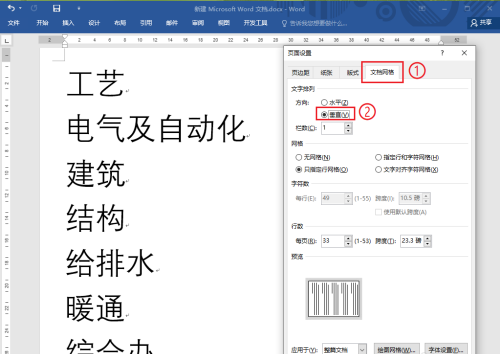 6、點擊【文檔網絡】,文字排列選擇“垂直”;