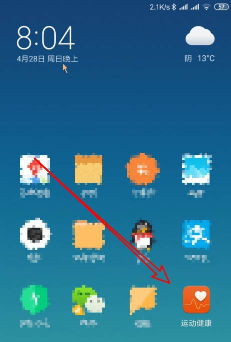 1、解鎖手機(jī)屏幕后,左右滑動(dòng)點(diǎn)擊運(yùn)動(dòng)健康圖標(biāo)。