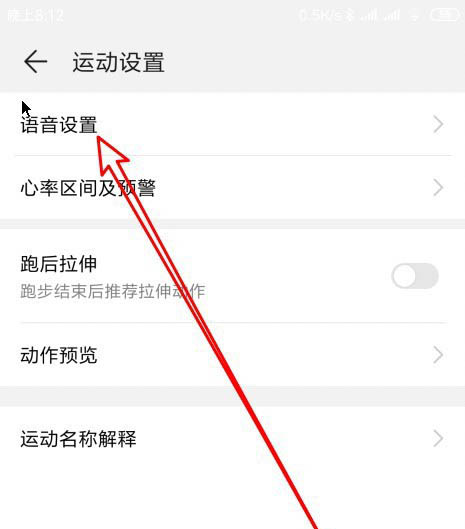 4、接下來在打開的運(yùn)動(dòng)設(shè)置窗口,點(diǎn)擊語(yǔ)音設(shè)置設(shè)置項(xiàng)。