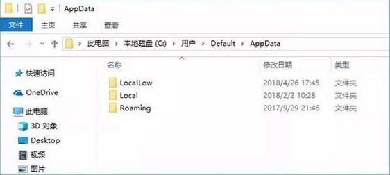 位于C:\Users\用戶名\AppData這一路徑有三個文件夾,分別是Local、Local Low和Roaming,這三個文件夾占據了很大空間。