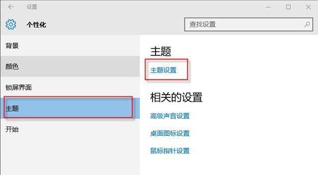 2、在個(gè)性化的界面中,我們點(diǎn)擊“主題”,再點(diǎn)擊“主題設(shè)置”,如下圖所示。