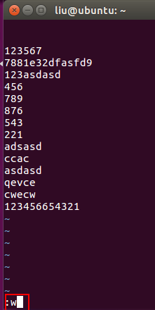 編輯完成后,按Esc返回命令模式,輸入“:w”(沒有文件名的話添加文件名);