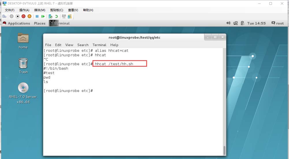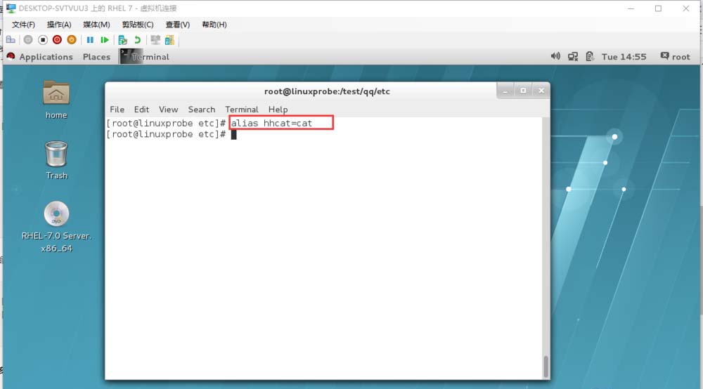 比如我們給操作:cat命令起一個別名hhcat,命令為:alias hhcat= cat