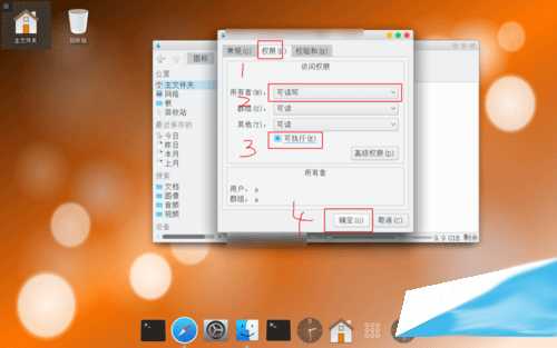 2、在菜單里面則點擊權限,所有者選擇可讀寫,在數字3這里選擇可執行,然后點擊確定。