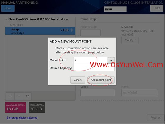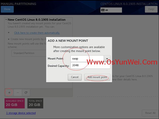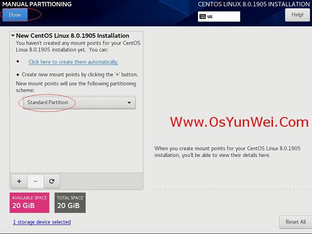 新掛載點(diǎn)使用以下分區(qū)方案:標(biāo)準(zhǔn)Standard Partition