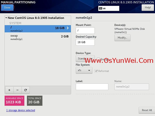 選擇Storage Configuration存儲(chǔ)配置,Custom自定義,點(diǎn)左上角的“完成Done”,進(jìn)入下面的界面