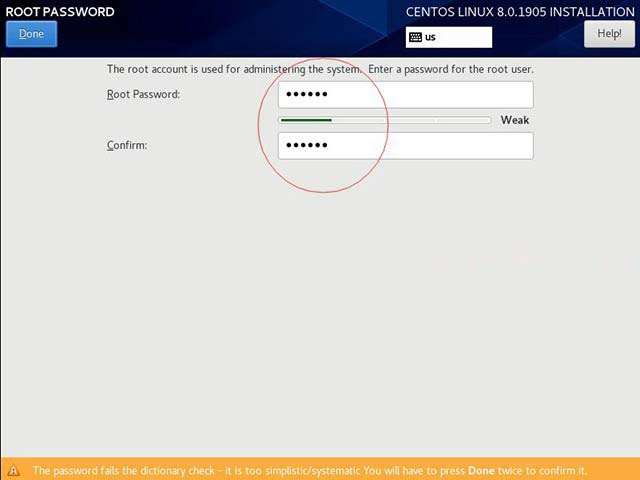 如果密碼長度太短會出現提示,設置好后要確認兩次,安裝繼續。