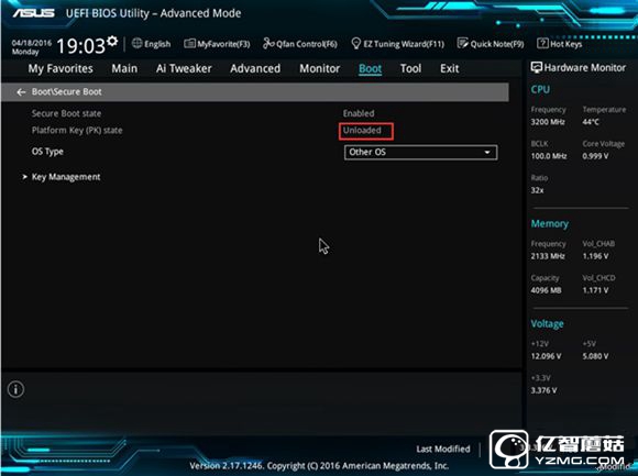 再次進入UEFI,確認平臺秘鑰狀態是否已經切換到未加載(Unloaded),是的話就可以再次重啟進入系統了。