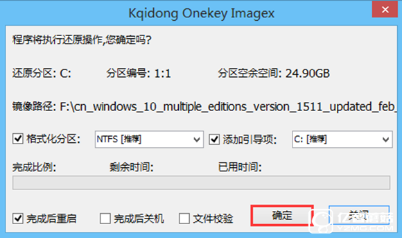 Ⅴ、無需修改直接默認設置,按下“確定”按鈕即可開始安裝win10系統,如圖所示: