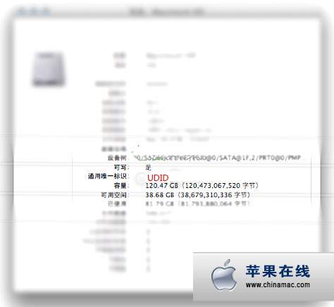 首先我們要知道分區的“通用唯一標識”(UDID),在磁盤工具中選擇分區,按Command+I或點擊導航欄里的藍色信息按鈕即可獲得分區詳細信息