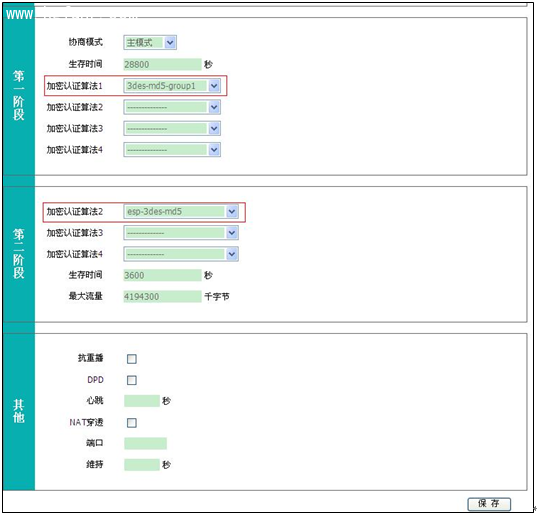 2、登錄H3C路由器,配置網(wǎng)關(guān)地址和加密算法等,如圖3、4、5所示:
