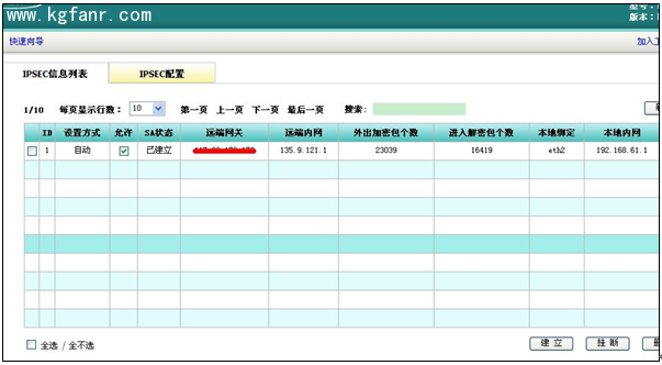 3、配置完成后,查看IPSEC VPN連接狀態(tài),如圖6所示: