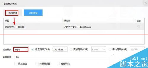 3、這里首先添加需要轉換和處理的歌曲,然后點擊輸出格式。