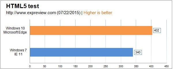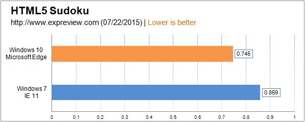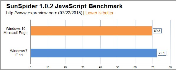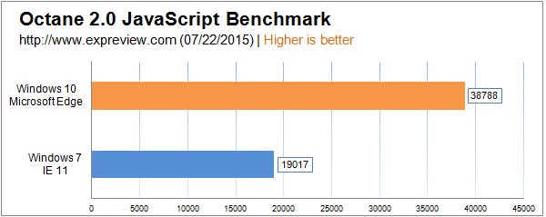 微軟Edge瀏覽器僅支持Windows 10系統(tǒng),所以這項(xiàng)對(duì)比中Windows 7只能繼續(xù)使用Internet Explorer11瀏覽器,測(cè)試的都是HTML5與JavaScript相關(guān)項(xiàng)目。