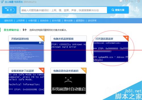 我電腦裝了i,e10.用了幾次后就藍(lán)屏,一打開就藍(lán)屏。通過金山安全衛(wèi)士修好了。