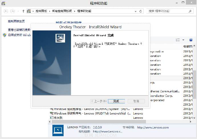 在Metro界面中找不到一鍵影音圖標,可在“控制面板”中“修復”“OneKey Theater”來解決,如下圖: