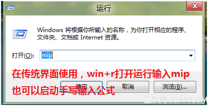 4、在傳統(tǒng)界面下也可以開啟,使用 Win+R 熱鍵調(diào)出運(yùn)行對(duì)話框,輸入“mip”后點(diǎn)擊確定即可。如下圖所示: