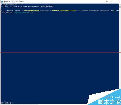 2、執(zhí)行以下代碼:Get-AppXPackage -AllUsers | Foreach {Add-AppxPackage -DisableDevelopmentMode -Register "$($_.InstallLocation)AppXManifest.xml"}