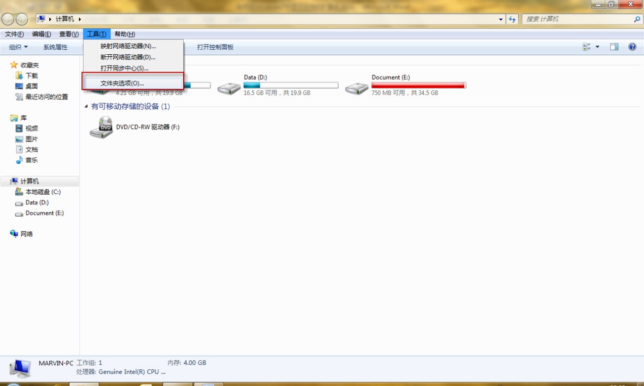 3. 點(diǎn)擊工具-文件夾選項(xiàng),如下圖所示: