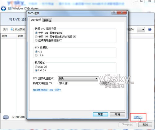 點(diǎn)擊“選項(xiàng)”按鈕可以設(shè)置DVD視頻的一些播放、縱橫比、視頻格式、刻錄速度等等。