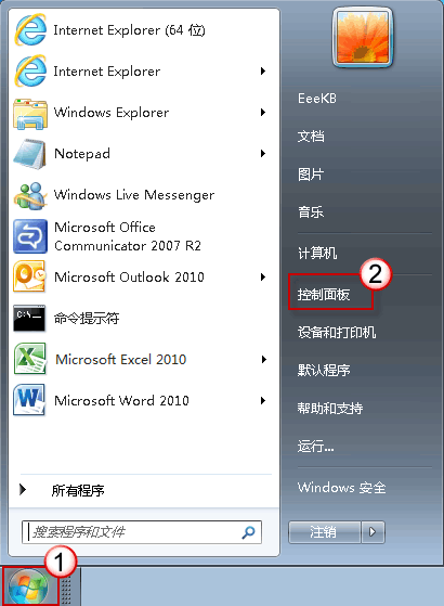 首先在 Windows 7 系統(tǒng)桌面上單擊“開始”按鈕,在開始菜單上按一下“控制面板”選項。