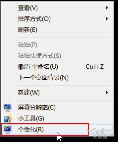 1、在Windows7系統(tǒng)桌面空白處點擊鼠標(biāo)右鍵,選擇”個性化“。