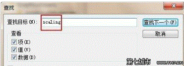 步驟四:在Configuration上點(diǎn)擊右鍵,并選擇查找,輸入Scaling,點(diǎn)擊“查找下一個(gè)”;