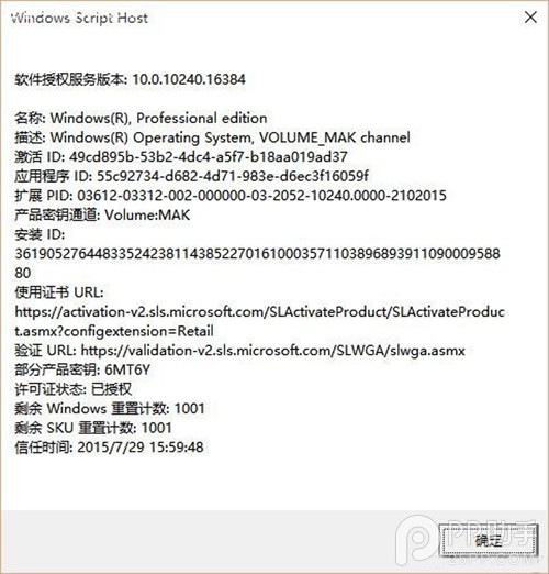 當(dāng)筆者使用360升級助手升級到Windows10后,再次查看該機的激活狀態(tài)時發(fā)現(xiàn),該機的產(chǎn)品密鑰通道為:Retail,并且為永久激活狀態(tài),也就意味著盜版Windows8.1可以通過360升級助手升級Windows后洗白。