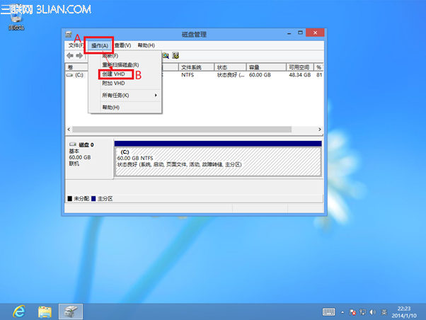 win8的VHD虛擬磁盤功能不知道大家體驗過沒,vhd是從win7開始就有的一個功能,可以在C盤劃分一定的空間出來,然后利用這個空間虛擬一個硬盤,一般用于安裝多個操作系統。Win8也增加了對虛擬磁盤的支持,可以直接打開vhd、iso等文件,更加方便用戶們使用。下面就帶來Win8創建VHD虛擬磁盤圖文教程。