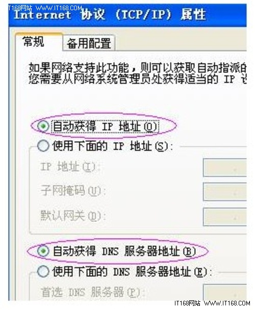 2.2. 將電腦設(shè)為“自動(dòng)獲得IP地址”,“自動(dòng)獲得DNS服務(wù)器地址”點(diǎn)擊“確定”: