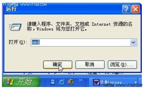 a)點(diǎn)擊“開(kāi)始”->”運(yùn)行”,輸入cmd,點(diǎn)擊“確定”,打開(kāi)DOS命令行: