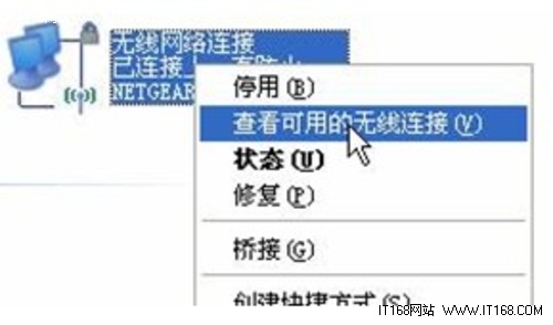 5.1. 完成基本配置后,若想通過(guò)無(wú)線方式上網(wǎng),須按照本文開(kāi)頭的設(shè)置“本地連接”的方式設(shè)置電腦的“無(wú)線網(wǎng)絡(luò)連接”。然后右鍵單擊“無(wú)線網(wǎng)絡(luò)連接”選“查看可用的無(wú)線連接”: