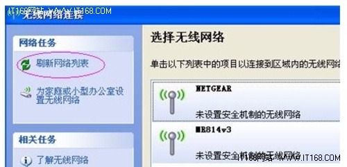 5.2. 點(diǎn)擊左上方的“刷新網(wǎng)絡(luò)列表”,系統(tǒng)會(huì)將搜索到的無(wú)線網(wǎng)絡(luò)在右邊列出,選中您想接入的無(wú)線網(wǎng)絡(luò),點(diǎn)擊右下方的“連接”即可: