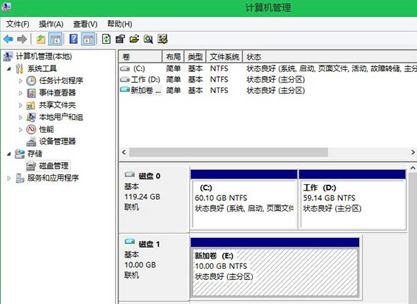 4、初始化虛擬磁盤后,我們手動新建一個E:新加卷,如下圖所示。