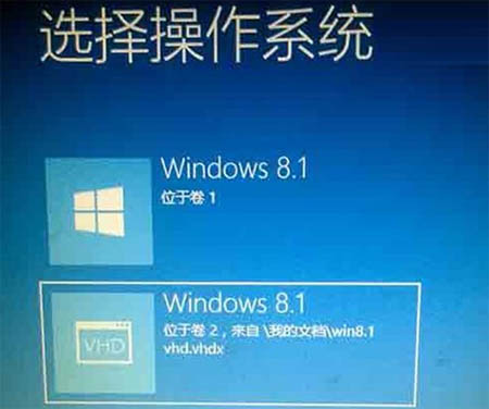 當VHDX版Win8.1完成配置后,Win8.1啟動頁面將自動識別存儲路徑,例如我的文檔win8.1 vhd.VHDX,如上圖所示。