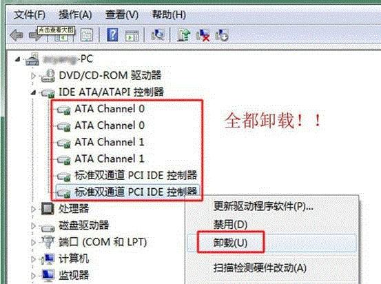 3.卸載IDE ATA/ATAPI控制器中所有設備,如圖: