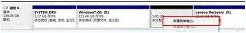 5、在新劃分出來的空白空間選擇郵件“新建簡單卷”。