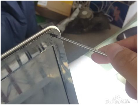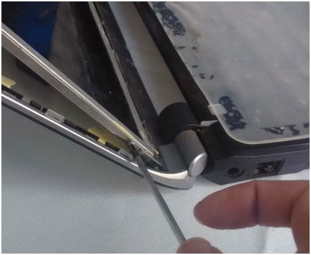 3、然后用撬殼工具把屏幕的“黑色邊框”慢慢地撬出來。我不敢保證每臺筆記本都是撬前面部分,這需要你仔細分析一下。
