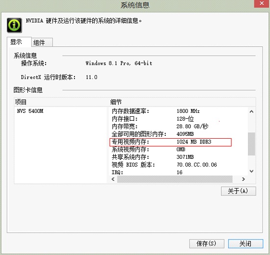 系統信息左側點開組件---顯示,可查詢到相關顯存數據;