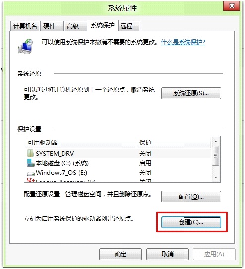 操作步驟: 一、還原點創(chuàng)建 1.桌面計算機點擊右鍵---屬性; 2.點擊“系統(tǒng)保護”; 3.點擊“創(chuàng)建”; 4.命名后點擊“確定”; 5.等待完成即可。 二、還原點...