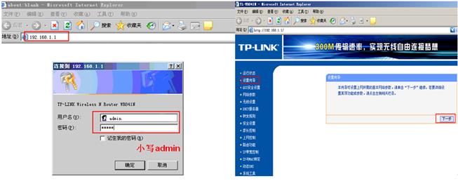 ①打開網頁瀏覽器,在地址欄輸入http://192.168.1.1打開路由器的管理界面,在彈出的登錄框中輸入路由器的管理帳號(用戶名:admin 密碼:admin);